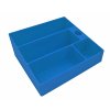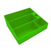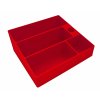 3 přihrádky - na malé, střední a velké knížky. Do každé přihrádky se vejde cca 6-7 knížek (závisí na tloušťce knih).